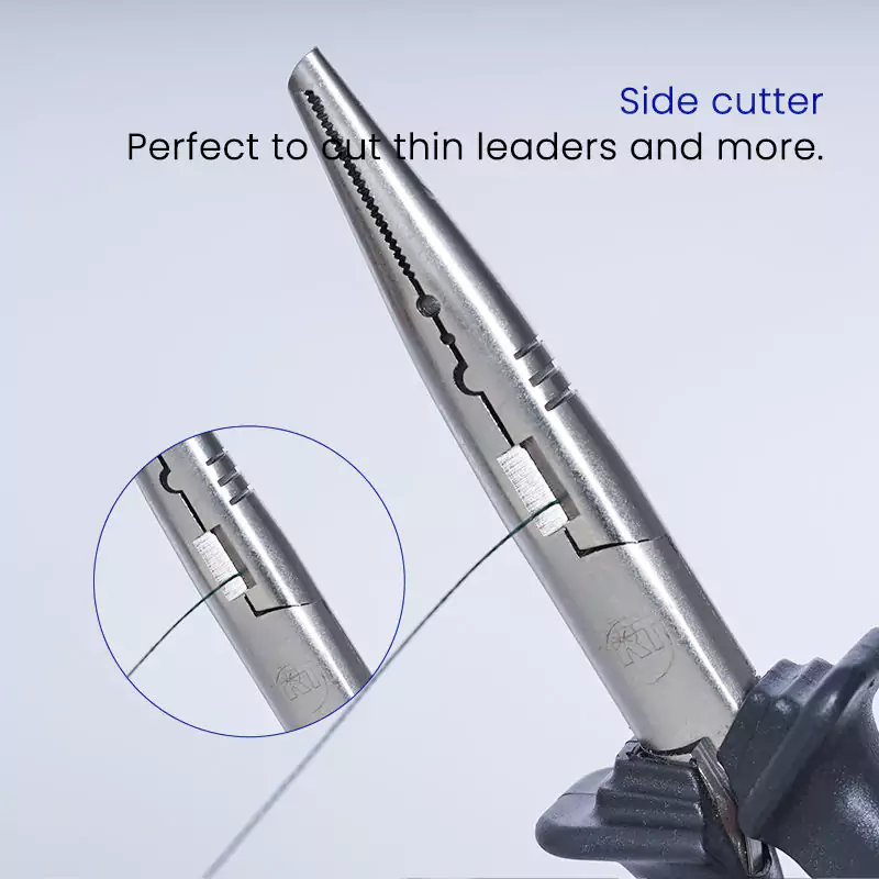 A: The side cutter can cleanly cut monofilament up to 1.2 mm, fluorocarbon up to 0.8 mm, and light wire leaders up to 0.6 mm in diameter.