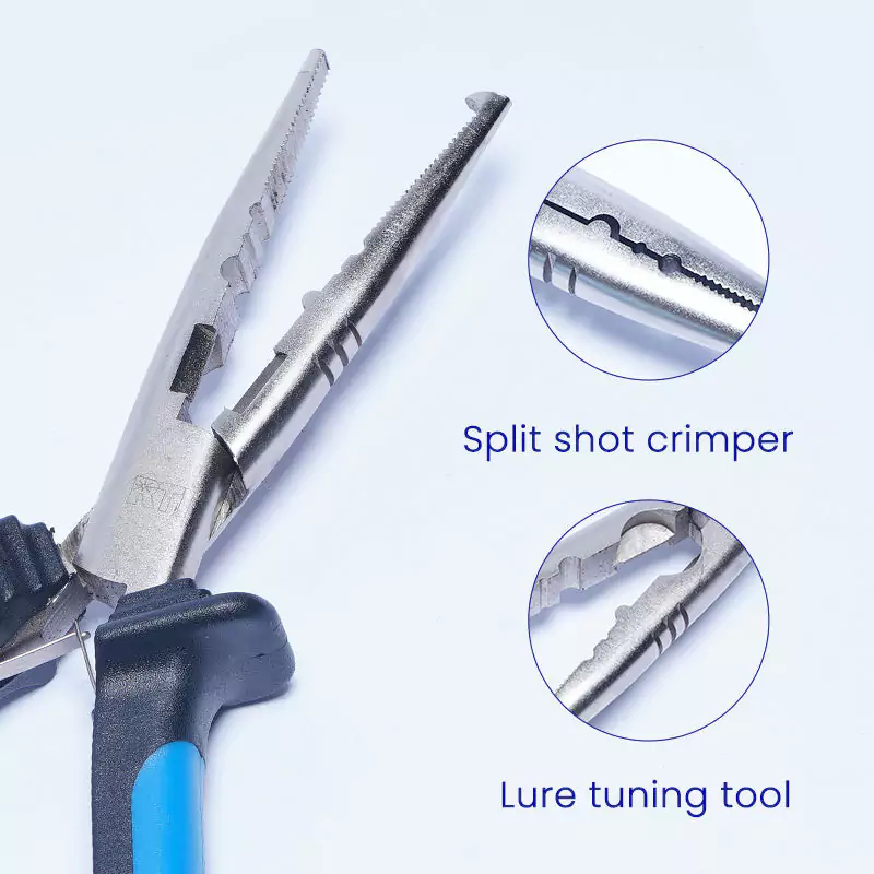 Carbon steel split ring pliers are compact tools for anglers. They open split rings, change hooks, crimp lead shots, and cut light leaders. With these functions, they improve rigging efficiency and reduce lure damage.