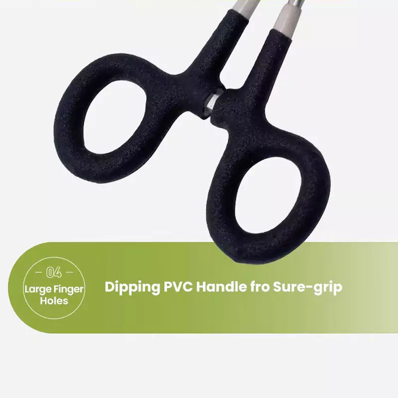RTI’s forceps are made from stainless steel and come in an 8″ length. They feature a curved tip for better access into the fish mouth and two locking positions for controlled clamping. The handle is PVC-dipped for a secure grip. These forceps are offered in blister card packing and are available for OEM and wholesale orders.