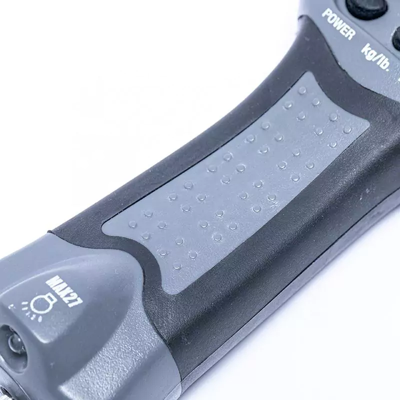 RTI’s 27kg / 60lb portable digital scale is engineered with a durable ABS+TPR housing, a stainless steel hanging hook, and a water-resistant structure to maintain reliability in outdoor fishing conditions. It features an LCD display with enhanced visibility, 10-position memory, and a comfortable TPR handle for secure handling.