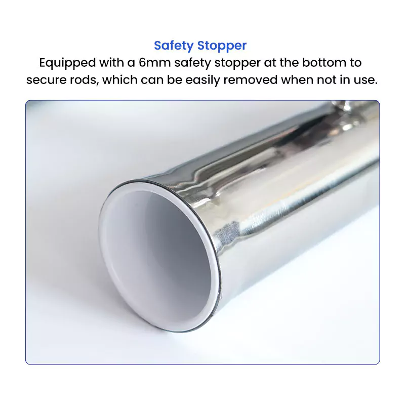 - Equipped with a 6mm safety stopper at the bottom to secure rods, which can be easily removed when not in use.