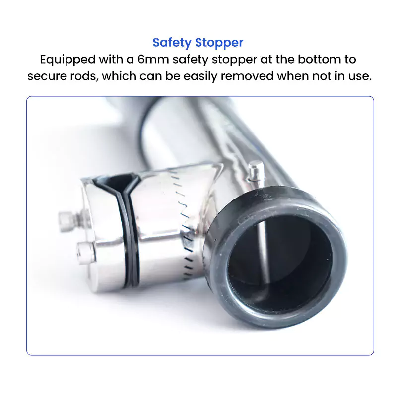 - Equipped with a 6mm safety stopper at the bottom to secure rods, which can be easily removed when not in use.